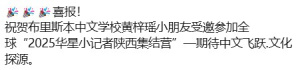 喜报:祝贺布里斯本中文学校黄梓瑶小朋友受邀参加全球“2025华星小记者陕西集结营”—期待中文飞跃.文化探源。